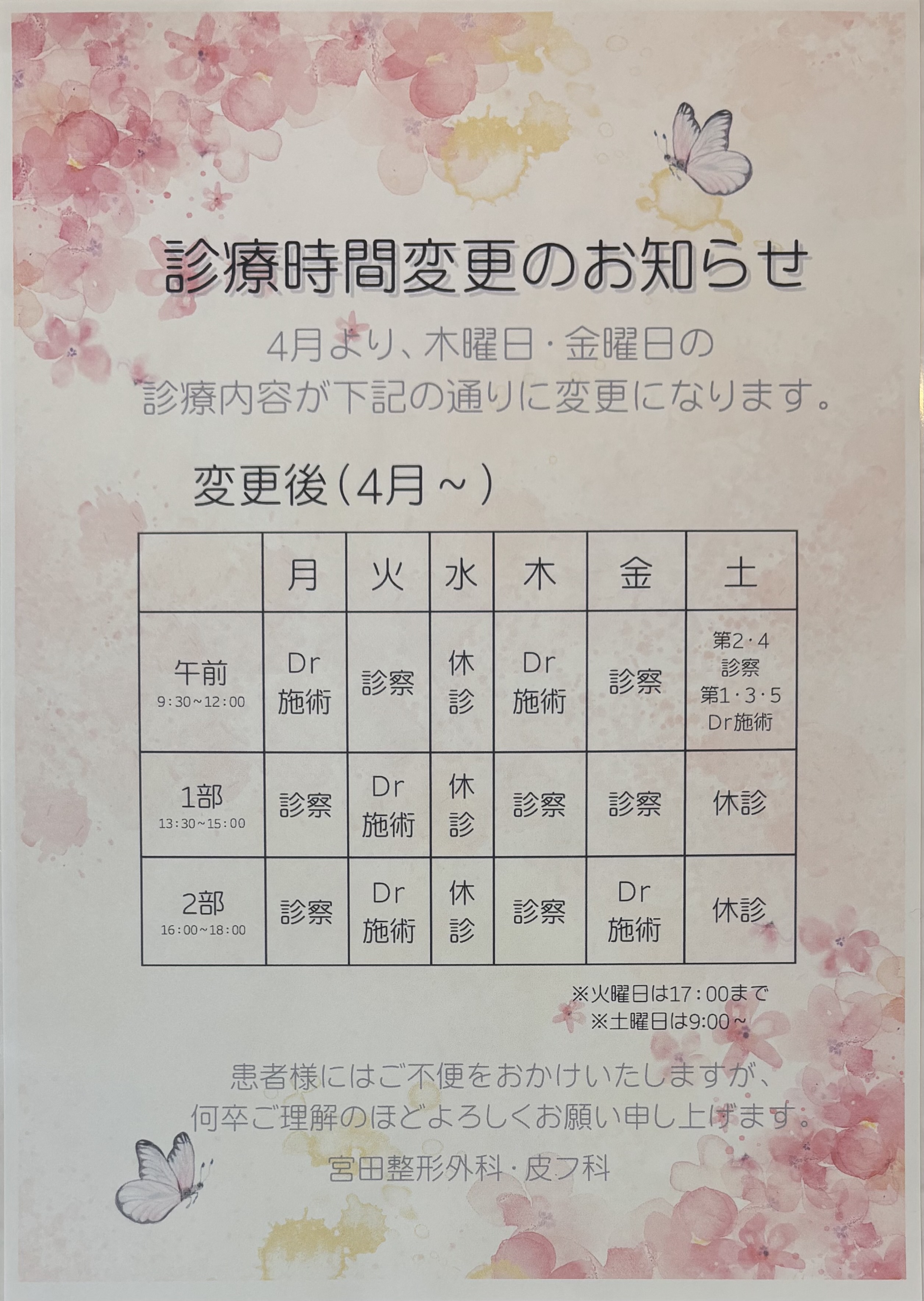 皮フ科・美容皮フ科 3月診療予定 ★臨時休診 3月30日(月) 3月31日(火) R8.4月〜 木曜日と金曜日の診療時間の変更がございます。 ご確認の上ご来院をお願いいたします。 ご迷惑をおかけしますがよろしくお願いいたします。