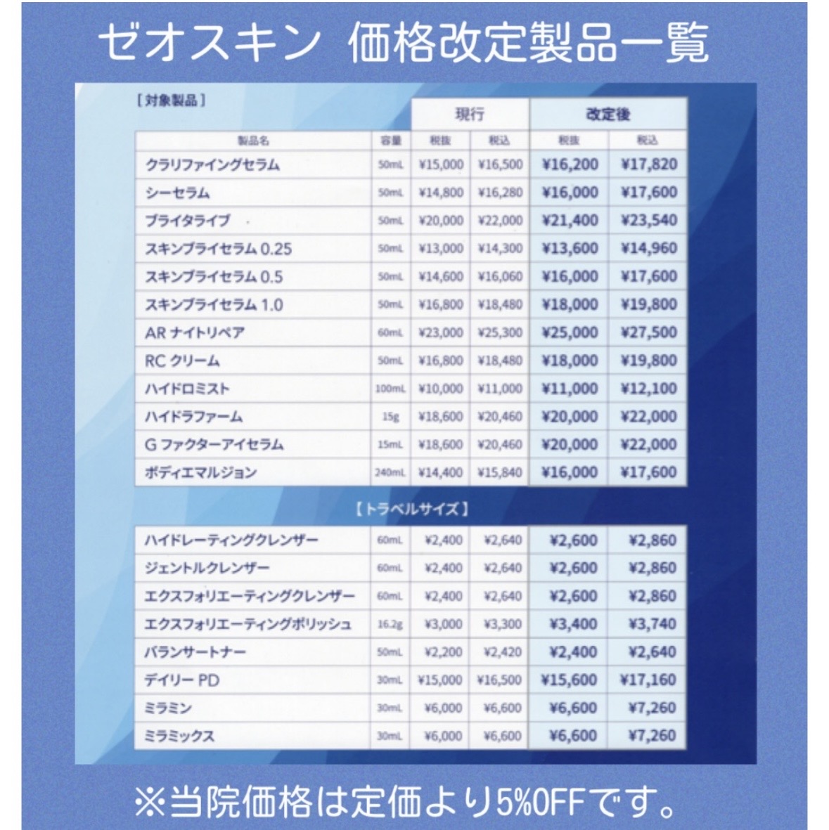 ゼオスキン・グラッシュビスタ 料金改定のお知らせ