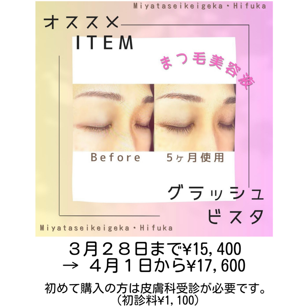 3月28日(土)12時までのご注文に関しては 現行価格でご購入いただけます。(3月30日、31日は皮膚科は休診です。)